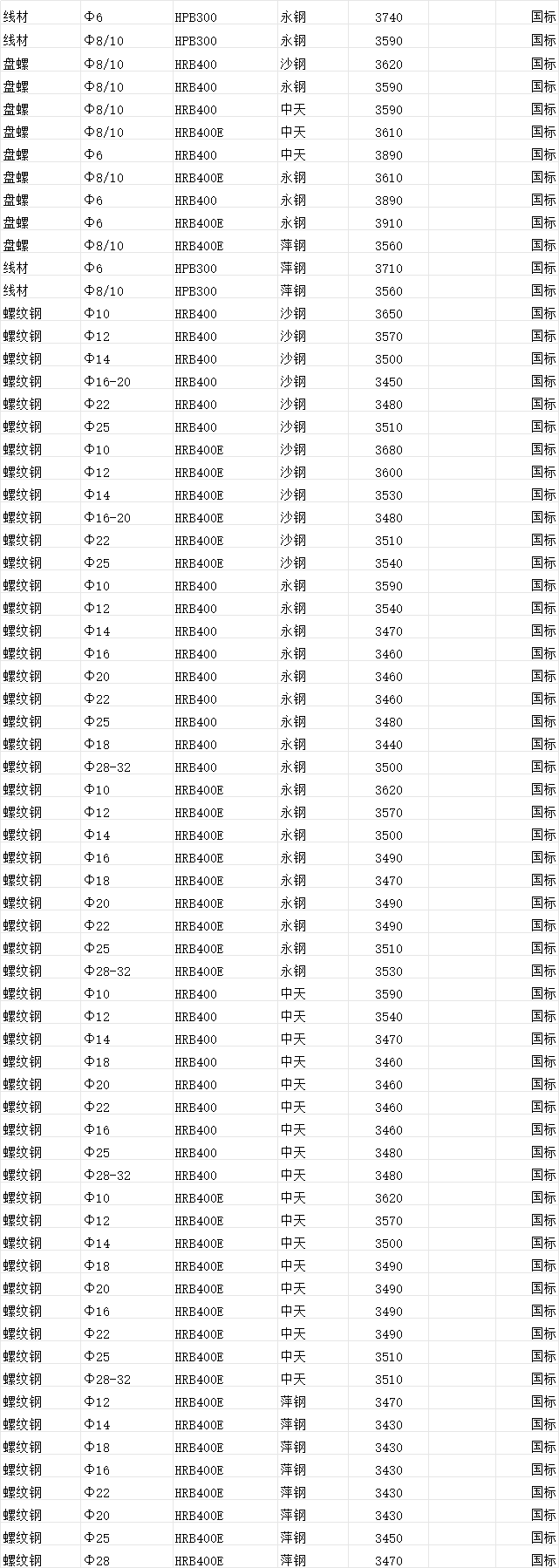 2025年10月6日(10.15)舟山錦海倉(cāng)鋼材建筑材料價(jià)格